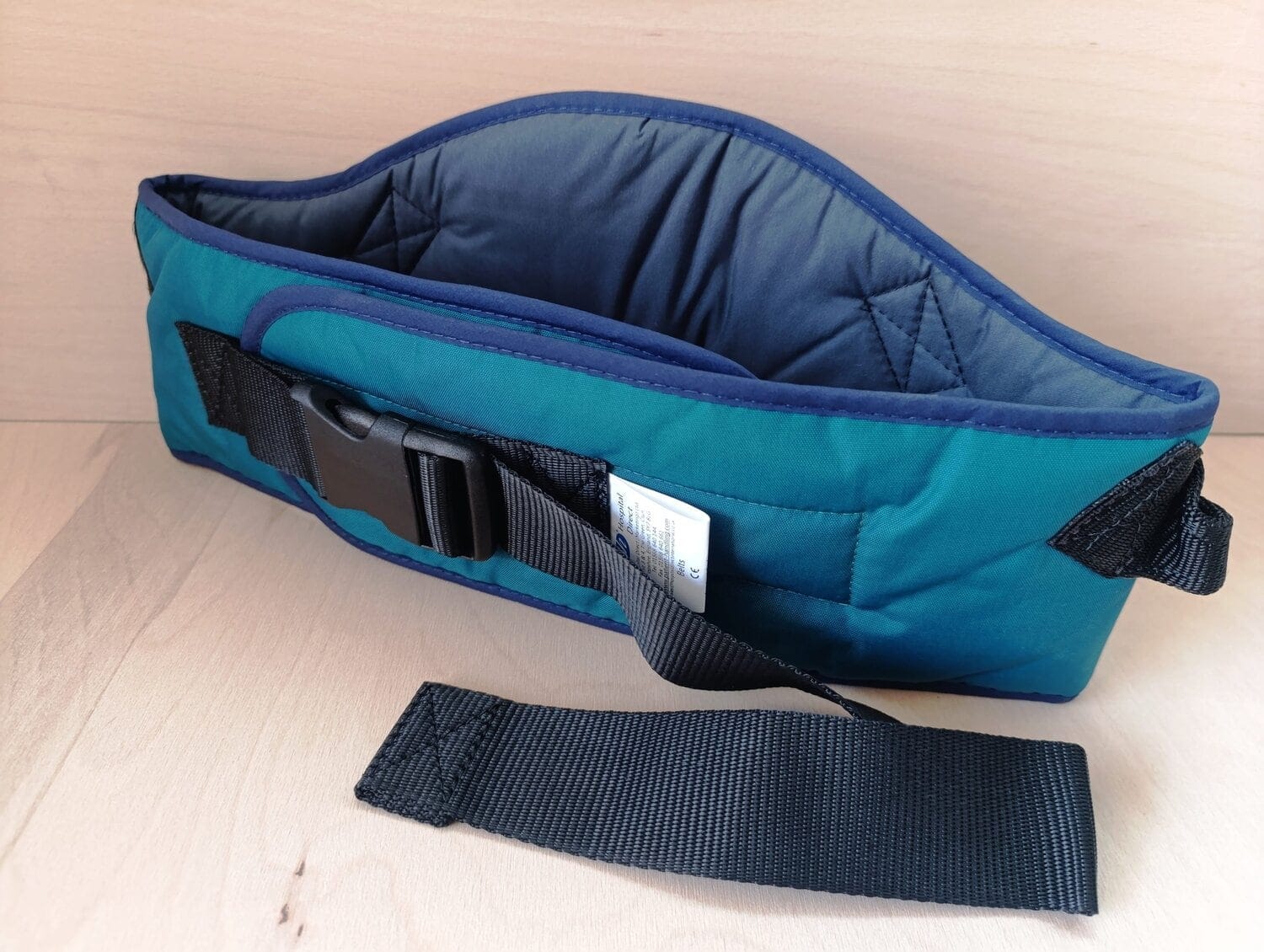 Přenosný pás se připevňuje kolem pásu pomocí nastavitelného popruhu s přezkou. Po obvodu má čtyři poutka, která slouží k jednoduššímu uchopení. Je vyztužený pro větší pohodlí a nastavitelný do šířky od 66 do 91 cm.