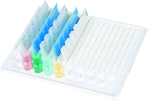 Pomůcka, která usnadňuje dávkování a konzumaci léků. Zásobník na 19 dávkovačů typu 3002 a 19 lahviček typu 3077. Vyroben z plastu.