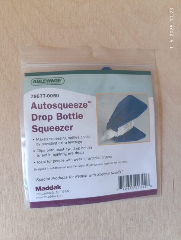 Výborná pomůcka, která usnadňuje kapání z plastové lahvičky. Vytlačovač je vhodný pro seniory, kteří mají slabší cit v prstech a dělá jim problém si nakapat například kapky do očí.