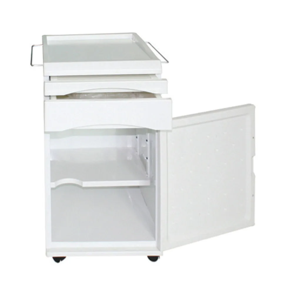 Stolek má čtyři kolečka, což usnadňuje manipulaci a přesun. Stolek je přístupný z obou stran. Dodáváme v bílém provedení.