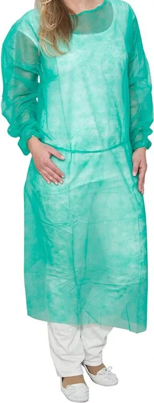 Jednorázový plášť poskytuje ochranu celého těla. Fixuje se pomocí vázacího pásu. Plášť je dostupný v univerzální velikosti v zeleném provedení. Je vyroben z měkkého flísu, který je šetrný k pokožce.
