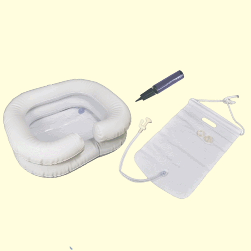 Mobilní umyvadlo na hlavu je speciální zdravotnická pomůcka, která usnadňuje provádění hygieny pacientům připoutaným na lůžku. Tvar umyvadla s výřezem na krk je speciálně uzpůsoben pro mytí hlavy, krku a vlasů.