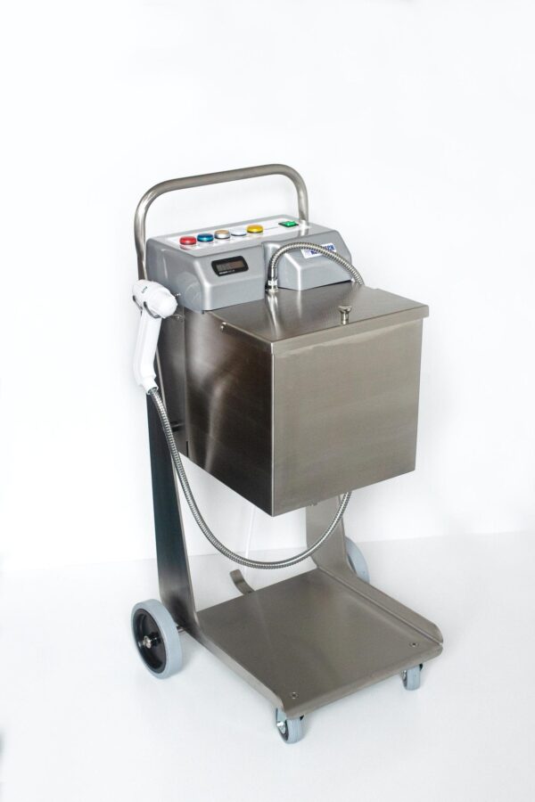 Mobilní ložní sprcha je vyrobena z kvalitní nerezavějící oceli. Integrovaná nádrž na vodu je vybavena ohřívačem a lze ji pohodlně přesouvat na kolečkách. Sprchový vozík s čerstvou vodou má kapacitu cca. 20 litrů. Její součástí je sprchová vana a vozík na odpadní vodu.