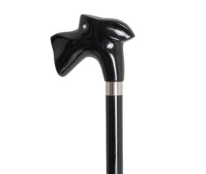 Hůl je vyrobena z kvalitního bukového dřeva s rukojetí ve tvaru psa. Celková výška 100 cm. Hůl je v celočerné barvě zakončena gumovou koncovkou, která zajišťuje používání bez hluku. Maximální nosnost 100 kg.