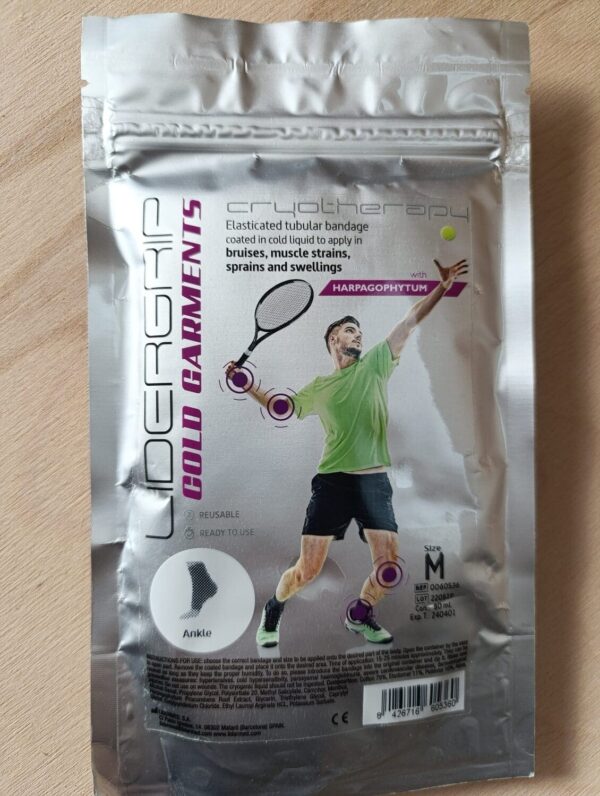Lidergrip Cold Garments je studený kompresní tubulární obvaz pro rychlou úlevu od modřin, podvrtnutí a zánětů kloubů způsobených sportovní aktivitou. Pro opětovné použití po aplikaci uschovejte v původním obalu.